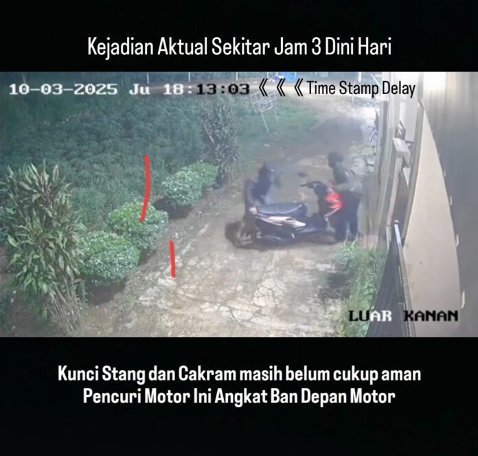 Meskipun korban mengkunci ganda, para pelaku curanmor tak kehilangan akal, mereka menggotong sepeda motor dari parkiran rumah di Jalan Raya Bogor-Kemang (Bomang), Sabtu dinihari, (4/10/2025).