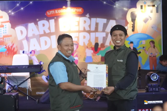 Penyerahan dilakukan dalam acara Family Gathering IJTI Kota Depok bertajuk ‘Dari Berita Jadi Cerita’ yang digelar di Senara Resort, Jumat (10/10/25).