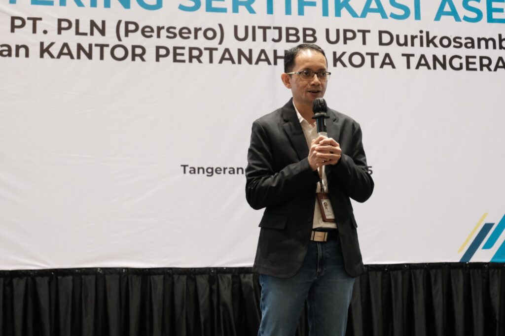 Manager UPT Durikosambi memberikan opening speech di acara Konsinyering Sertifikasi Aset Tanah Bersama Kantor Pertanahan Kota Tangerang. (Dok PLN)