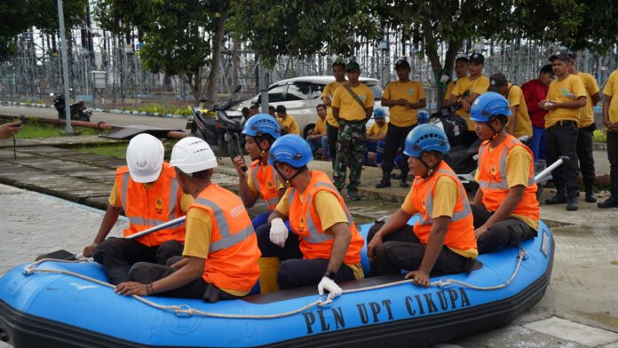 RBN, TANGERANG – PT PLN (Persero) Unit Pelaksana Transmisi (UPT) Cikupa menggelar simulasi tanggap darurat kebakaran dan banjir di Gardu Induk Tegangan Ekstra Tinggi (GITET) 500kV Balaraja. Kegiatan tersebut diikuti oleh pegawai dan Tenaga Alih Daya (TAD) dalam rangka peringatan Bulan Keselamatan dan Kesehatan Kerja (K3).